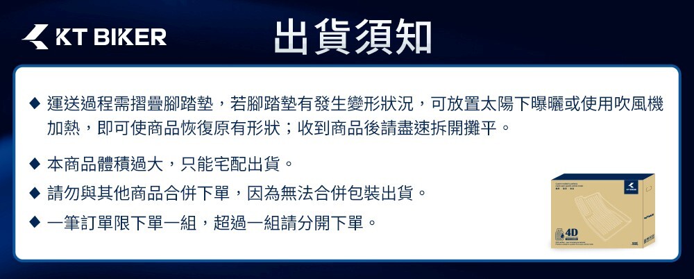 ◎運送過程需摺疊腳踏墊,若腳踏墊有發生變形狀況,可放置太陽下曝曬或使用吹風機加熱,即可使商品恢復原有形狀;收到商品後請盡速拆開攤平。